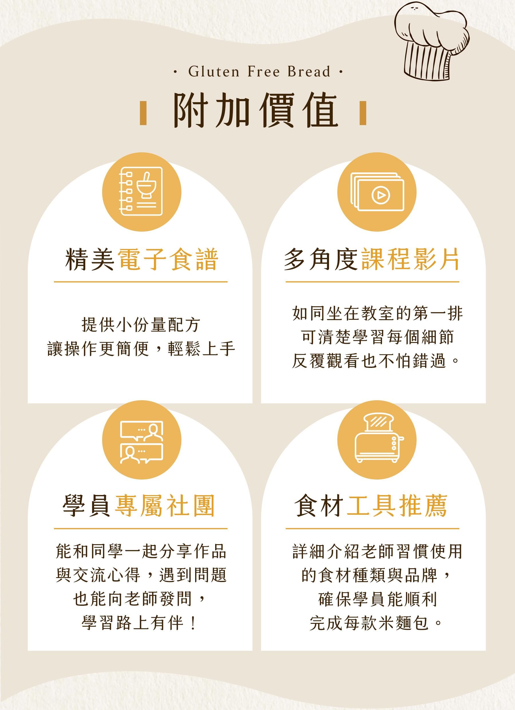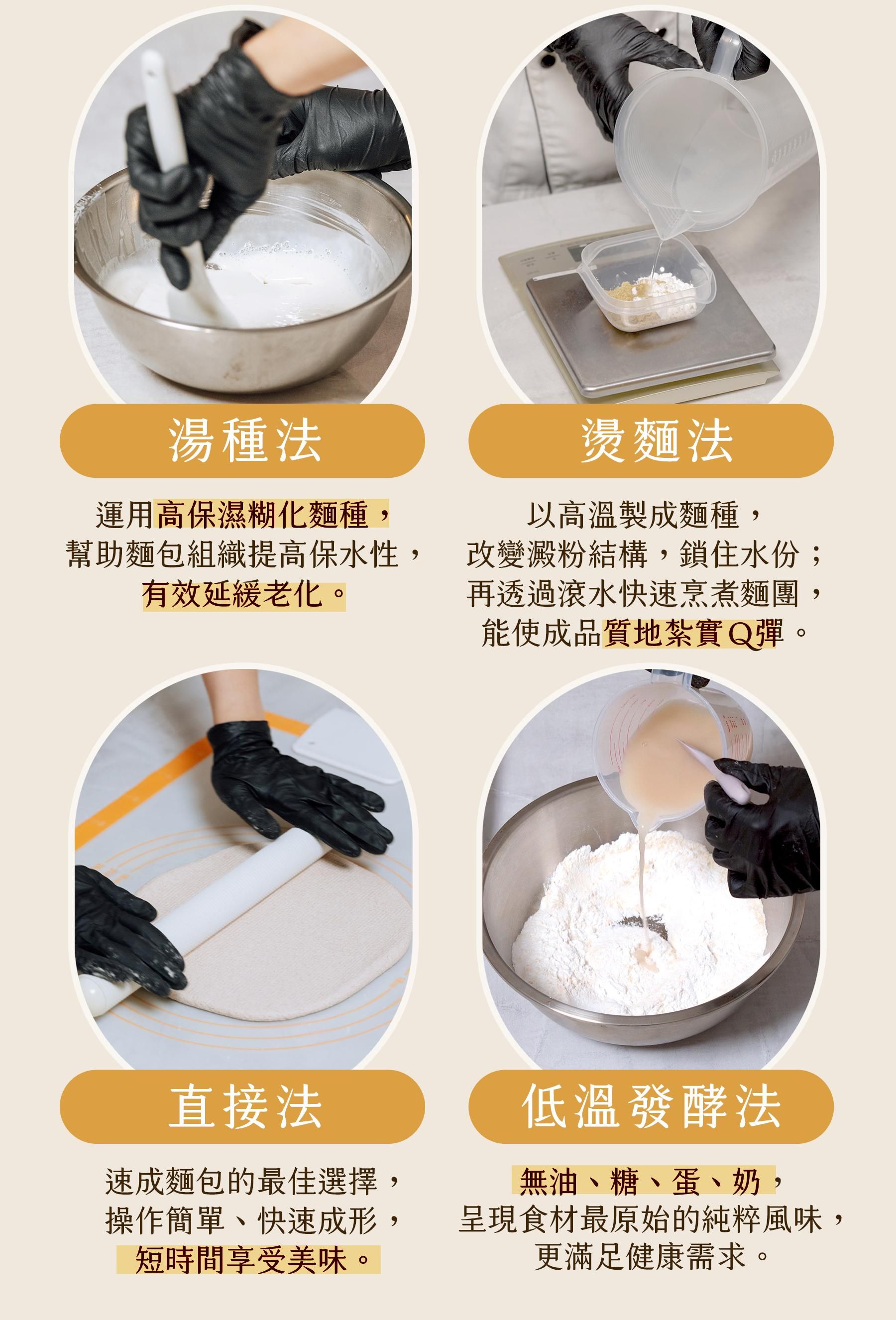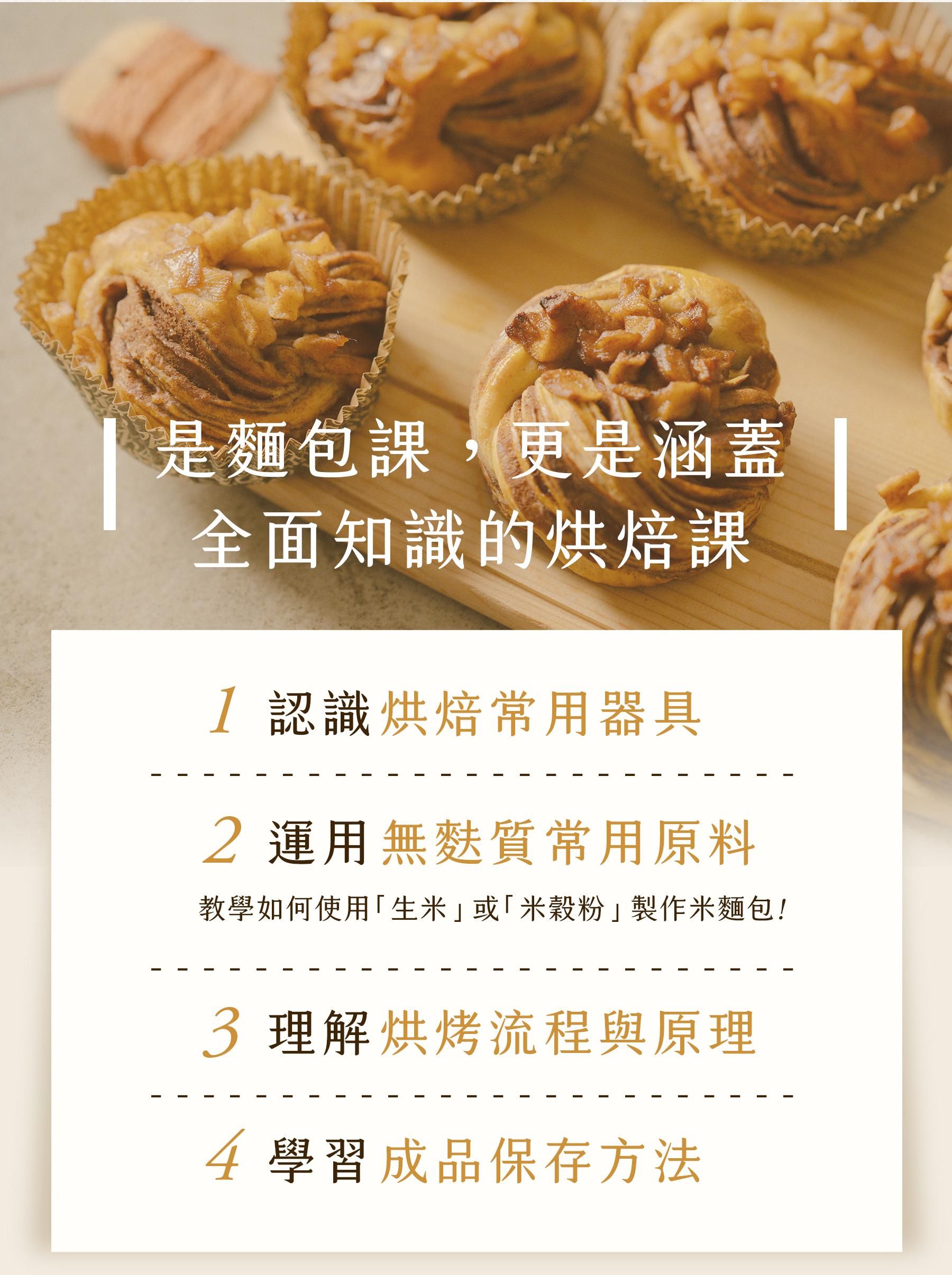 6大製作法:米漿法、隔夜發酵法、湯種法、燙麵法、直接法、低溫發酵法,告別無麩質麵包口感較硬、外型扁塌、質地像粿的印象。