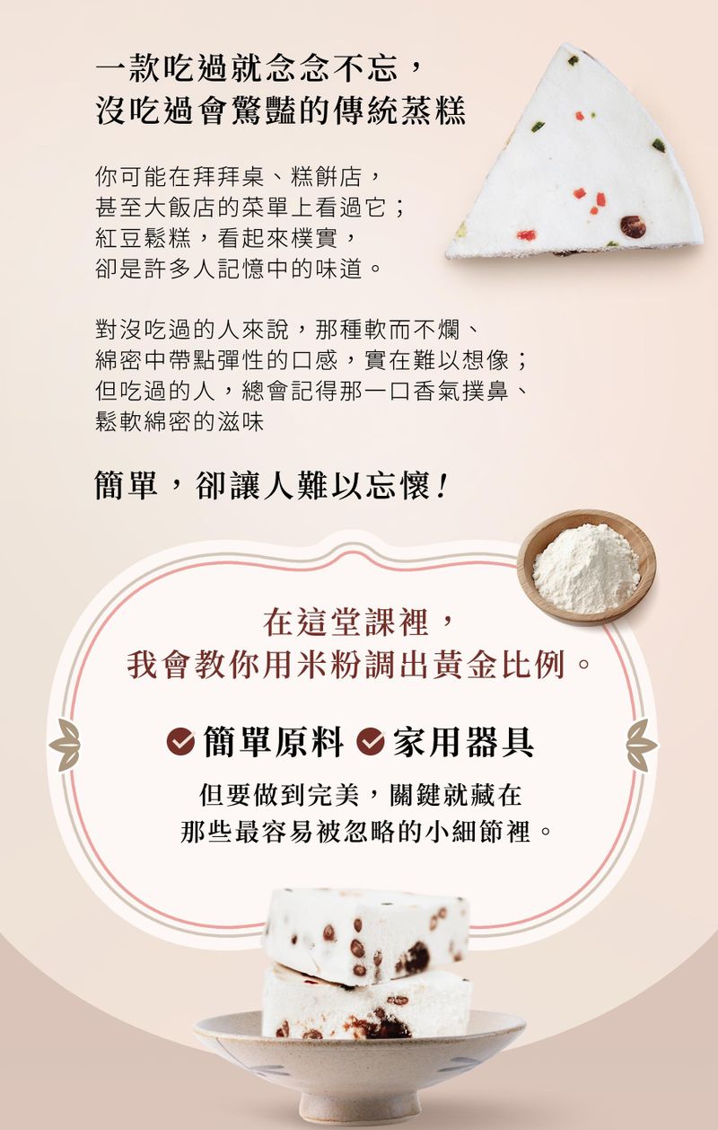 米粉黃金比例:掌握不塌、不黏、不乾的關鍵比例,蒸出鬆軟卻不鬆散的糕體。