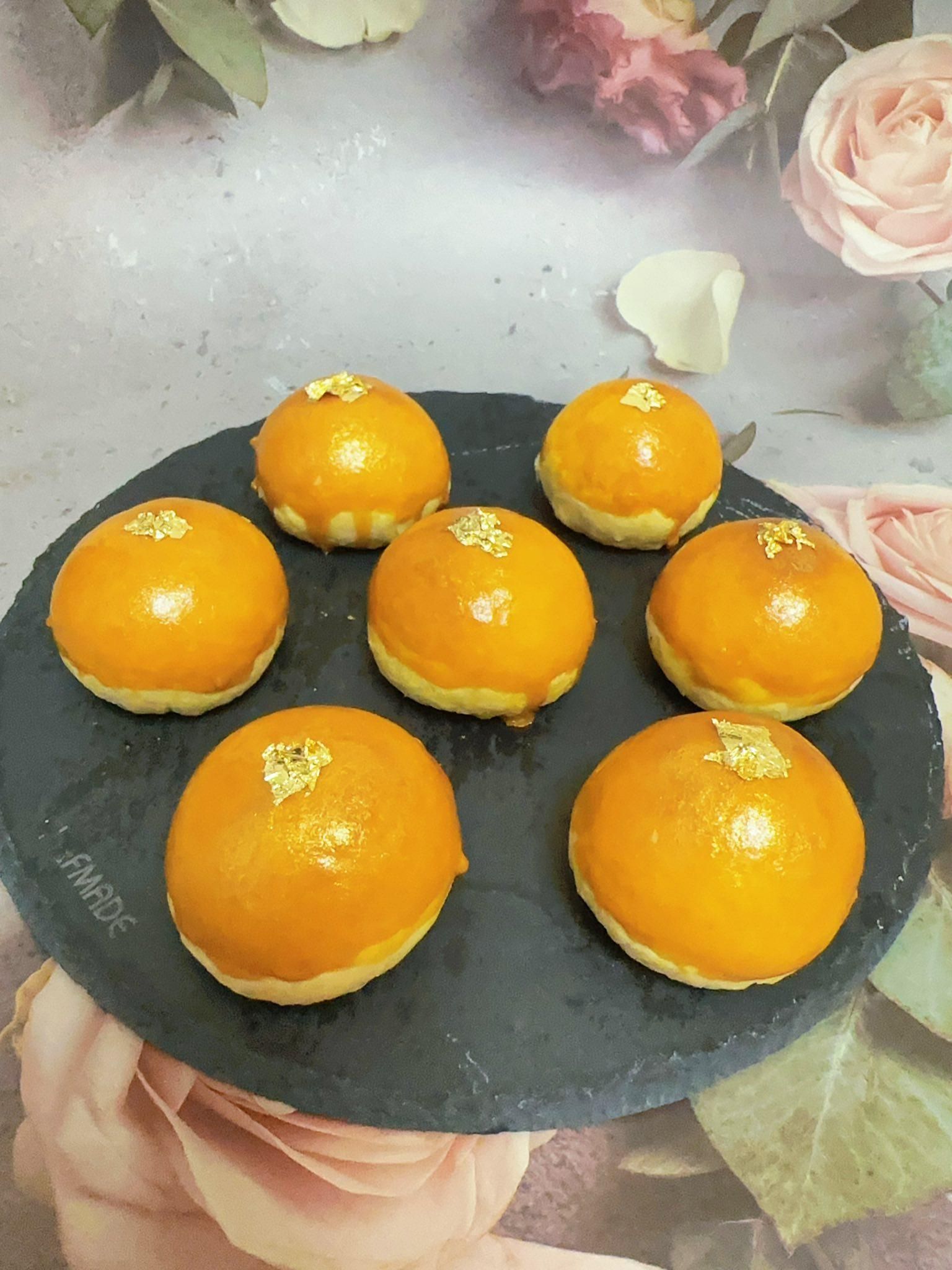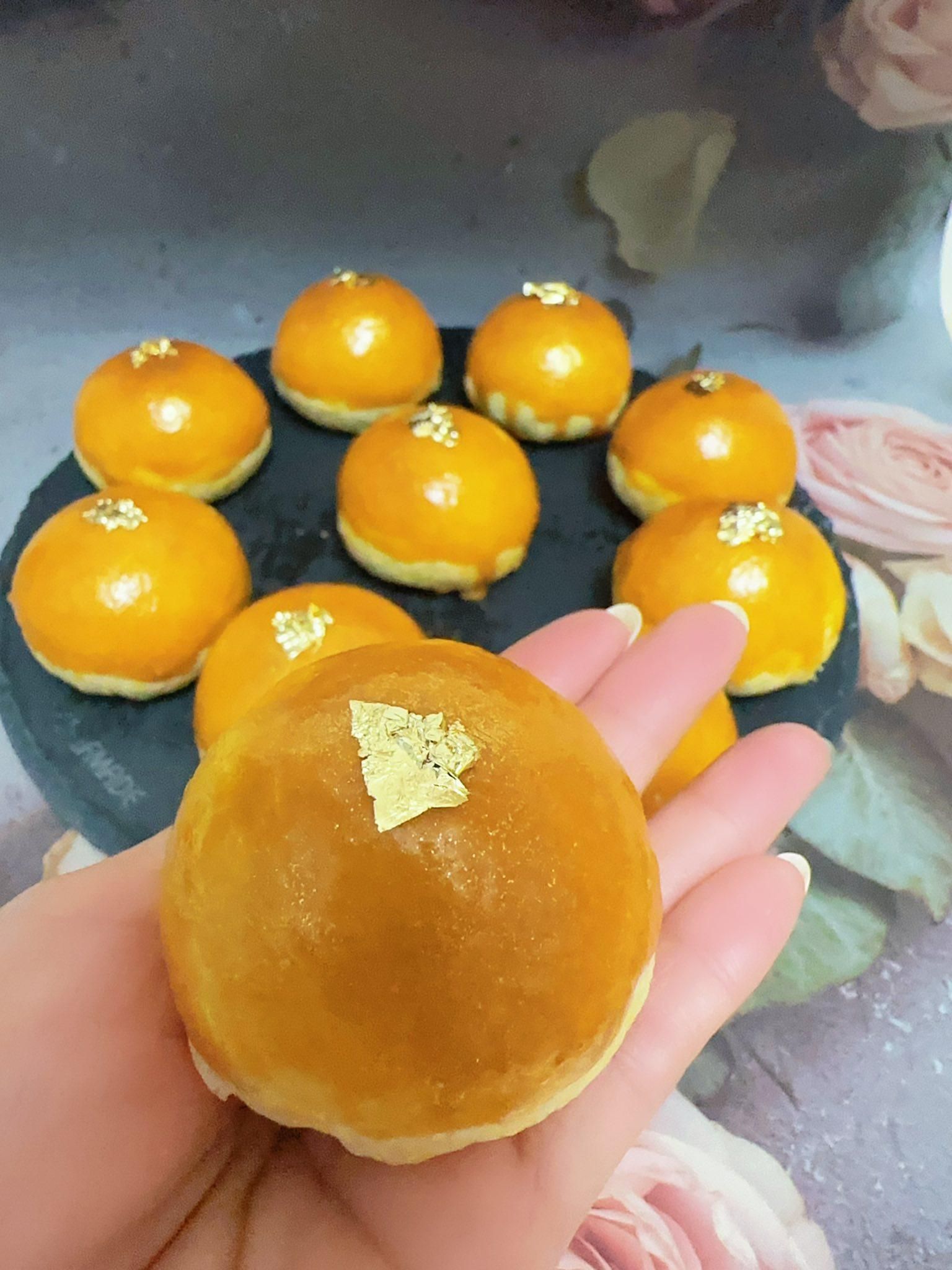 按照老師的步驟,全低粉ㄧ點都不難 好好吃細緻酥鬆 用紅仁蛋黃抹面,真美 我把黑芝麻換成食用金箔,增添了高級感~