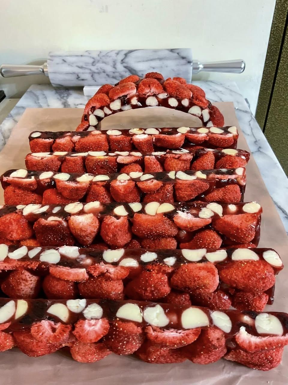 我也來交作業! 所有的工具從無到有,準備齊全才開始動手做,做的時候好緊張啊⋯手忙腳亂的! 好在老師的課程影片講的非常仔細👍 而且非常幸運,我的34寸鍋只比老師的鍋重10克,只要照著老師的步驟一步一步做,就完成了好吃的~莓果夏威夷豆Q軟糖 紅紅火火的軟糖真的很喜氣,好適合過年🧨 朋友吃了都說好吃😋