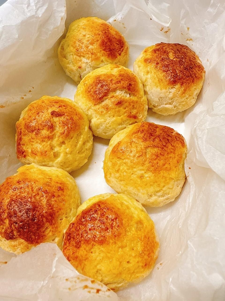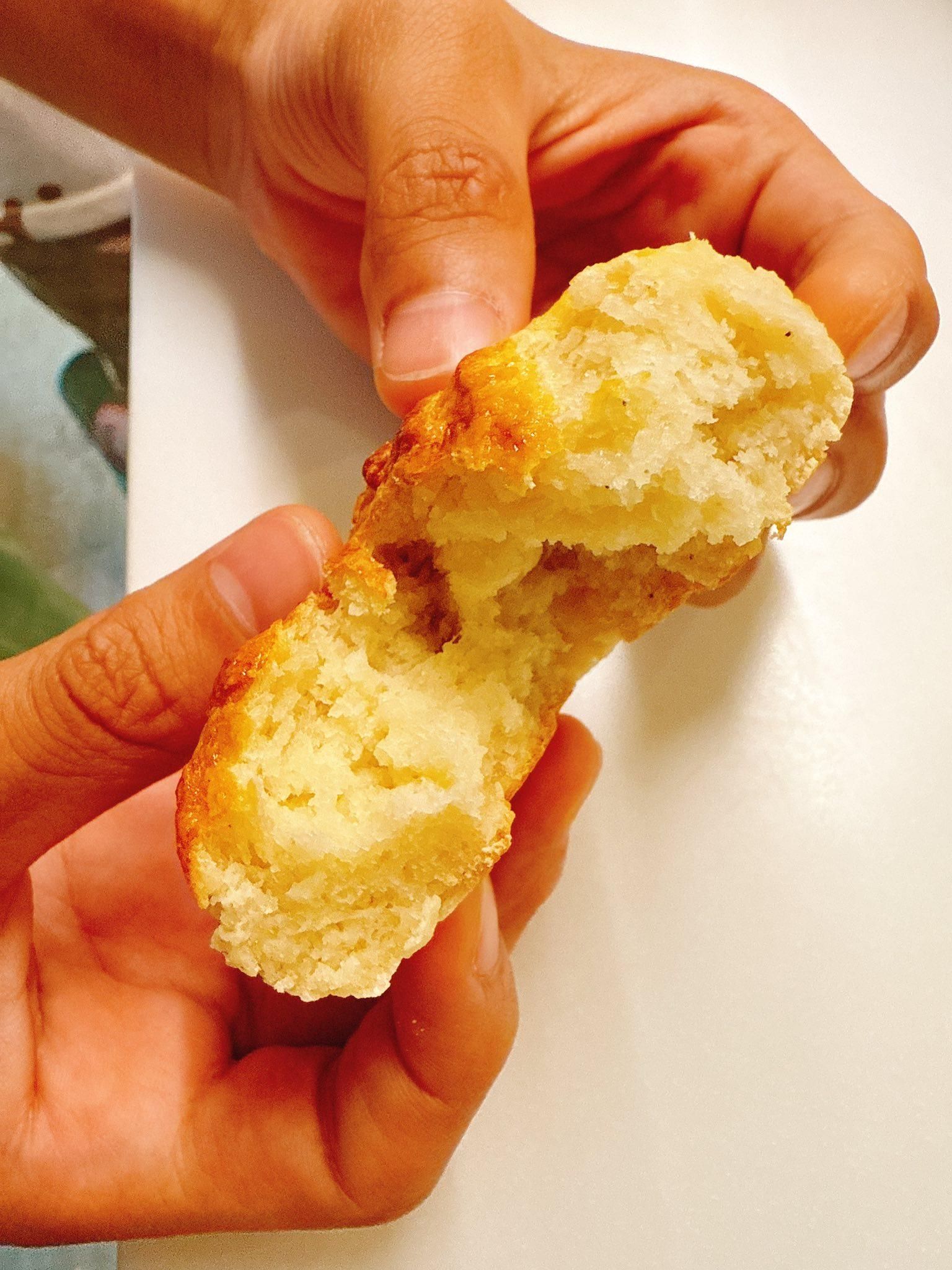 優格米餐包 完全忘記要揉糆團,獲得看起來像司康的坑坑巴巴表面餐包,但組織真的很像一般麵包,好吃。
