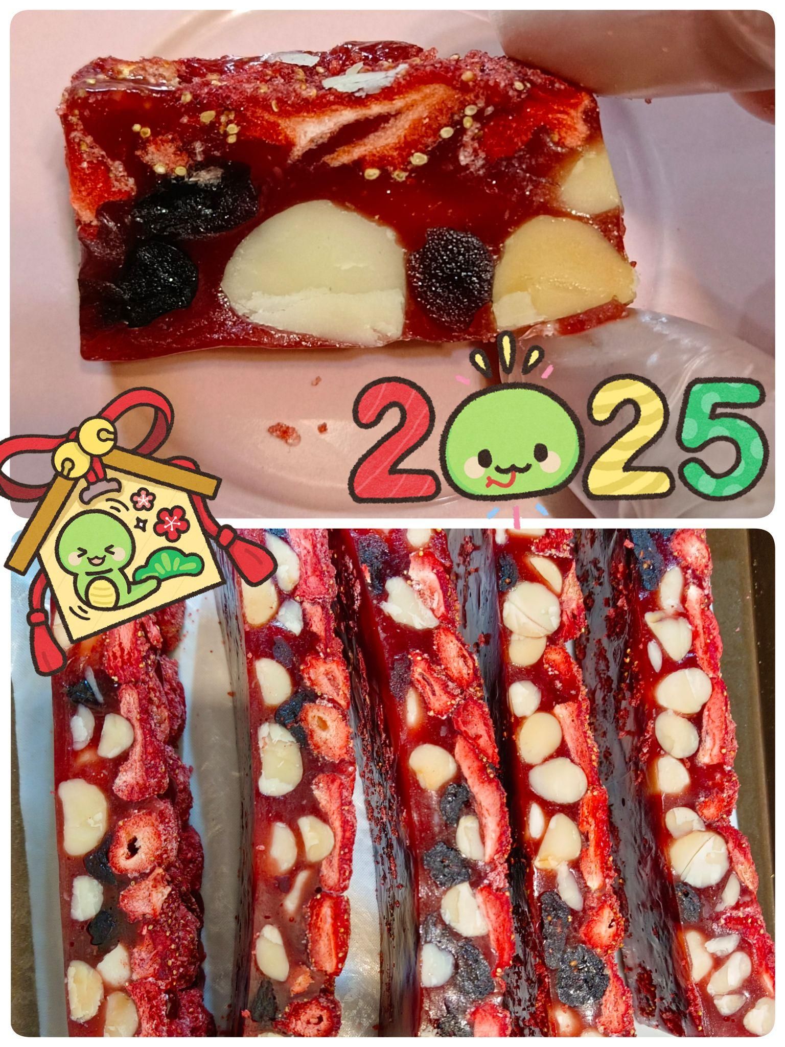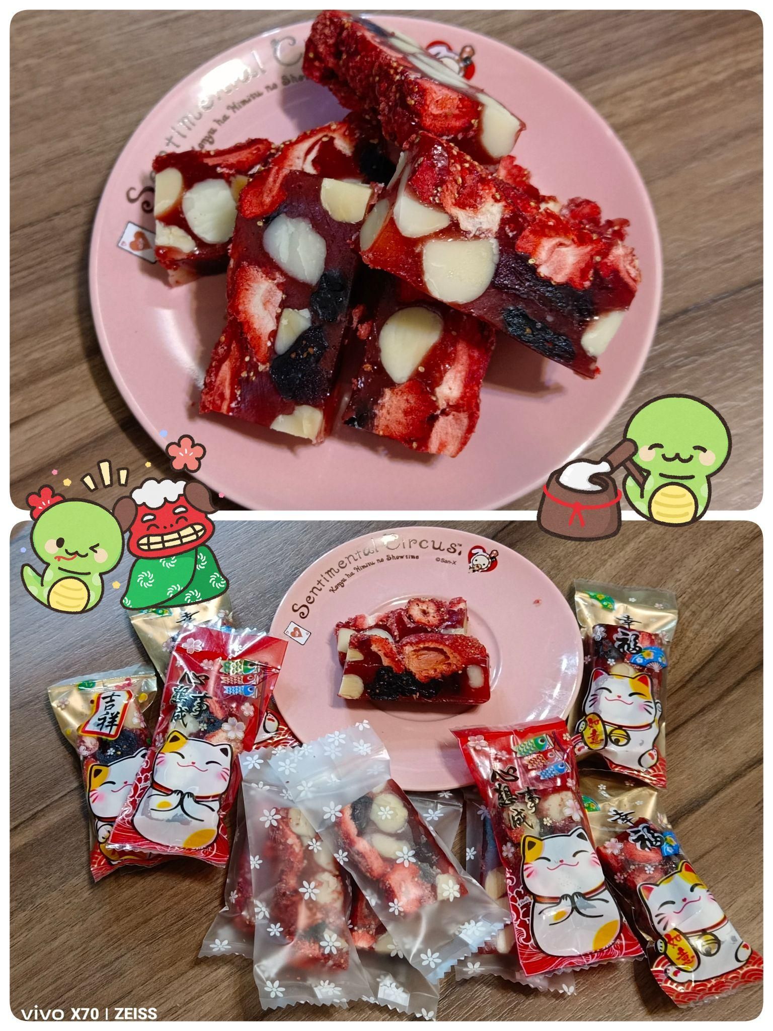 新年第一天交功課囉! 超級好吃的, 軟硬適中,很好切,唯一不足之處是... 草莓沒買到品質比較好的,有大有小...但不影響口感😋😋😋 小朋友吃得津津有味...停不了口啊!